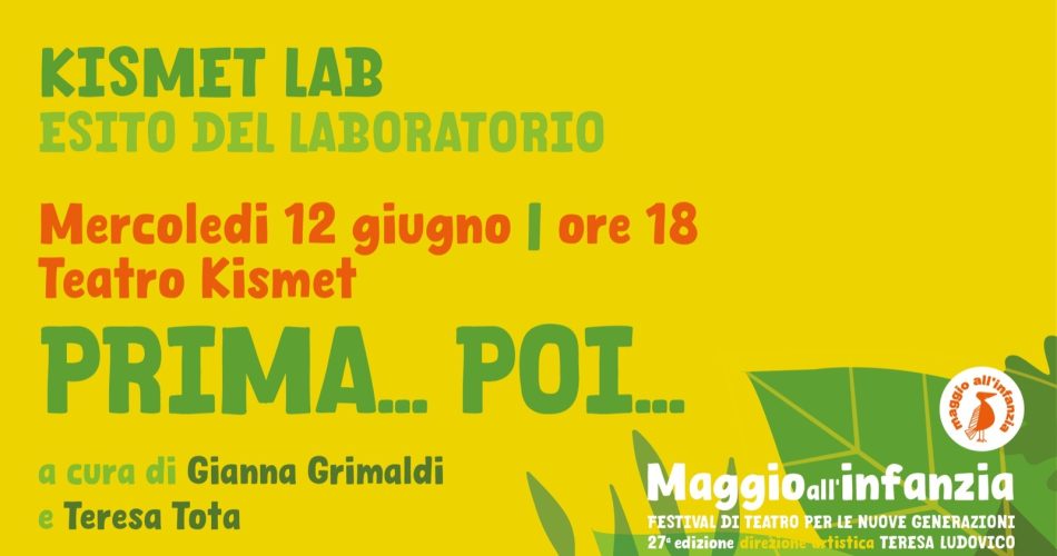 Al Teatro Kismet di Bari in scena gli allievi del Kismet Lab ‘Libro teatro libero, il laboratorio teatrale dedicato a bambine e bambini dai 3 ai 7 anni. Mercoledì 12 giugno alle ore 18 le curatrici del corso, Gianna Grimaldi e Teresa Tota, conducono l’esito finale intitolato Prima… Poi…, con la partecipazione speciale di Vito Carbonara. Sul palcoscenico dell’Opificio delle arti si svela un racconto di metamorfosi del passaggio tra l’infanzia e l’adolescenza, “tra come sono e come sarò – raccontano le curatrici – da quel luogo di mezzo che sta tra qua e là”. E lo fa attraverso le figure di Salomone, il corvo saggio, Vittoria, la piccola aiutante, e un gruppo di bambine e bambini che da crisalide diventeranno farfalle in volo.