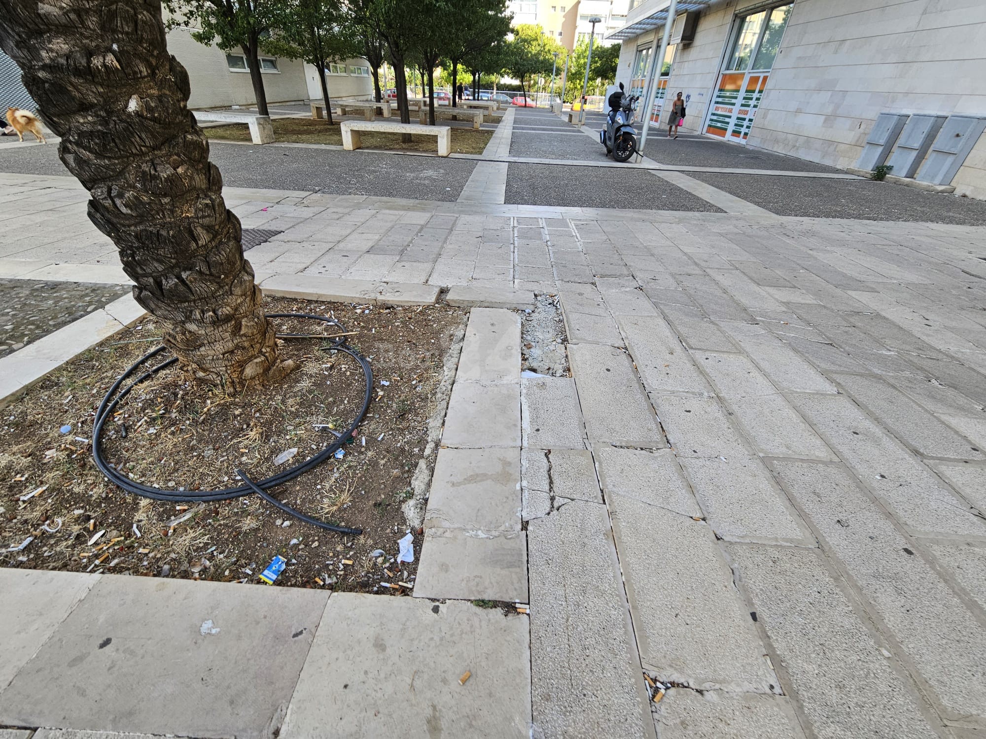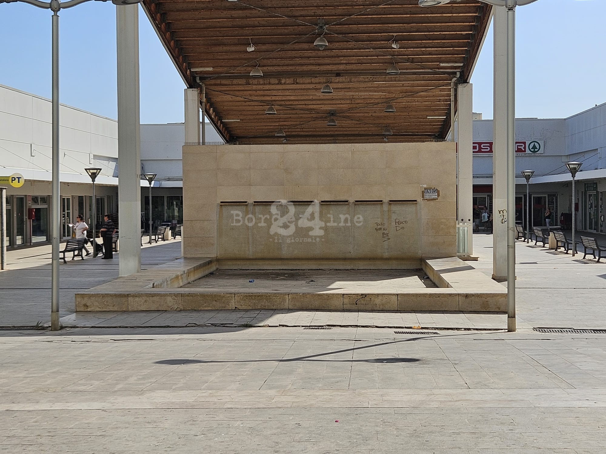 Fontane spente da mesi, piene di rifiuti e ricettacolo di insetti. Pavimentazione dissestata e pericolosa. Diverse attività chiuse. Siamo in piazza Europa al San Paolo, quello che doveva essere il centro direzionale e il fiore all’occhiello del rione San Paolo è stato completamente abbandonato a se stesso. Basta passeggiare per rendersi conto della totale assenza di manutenzione e pulizia. Resistono diverse attività commerciali, dal centro analisi al supermercato, ma ci sono anche numerose saracinesche abbassate e negozi diventati ricettacolo di immondizia.