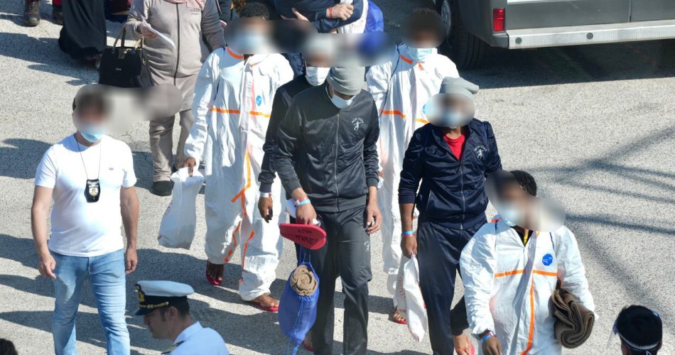 “Le elevate spese di manutenzione straordinaria registrate per le strutture pugliesi sono un chiaro indicatore, assieme alla continua oscillazione della capienza effettiva del Cpr di Bari e i pochi posti disponibili nel Cpr di Brindisi, dell’invivibilità di questi luoghi, sottoposti a continui danneggiamenti e a sistematiche ristrutturazioni straordinarie – spiegano da ActionAid – L’analisi presentata impone nuove domande all’esecutivo e agli amministratori locali. Si auspica la chiusura di luoghi inumani e inutili e di porre fine a una politica, mai valutata realmente, che a livello nazionale porta al 10% dei risultati attesi”. (foto migranti Geo Barents)