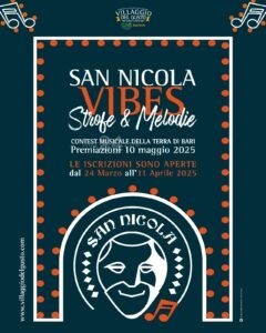 In occasione dell’appuntamento con il ‘Villaggio del Gusto 2025’, l’iniziativa patrocinata dal Comune di Bari, che anche quest’anno animerà largo Giannella dal 6 all’11 maggio in occasione dei festeggiamenti per San Nicola, l’associazione culturale De Gustibus Vitae annuncia la prima edizione dei contest ‘San Nicola Vibes, Rhymes e Clicks’. I tre premi nascono con l’intento di valorizzare il patrimonio culturale di Bari e della Puglia, di dare voce ai talenti locali e di promuovere le espressioni artistiche che meglio rappresentano lo spirito autentico della regione, rafforzando il legame con il territorio e offrendo una vetrina di rilievo per gli artisti sotto il segno dei San Nicola.