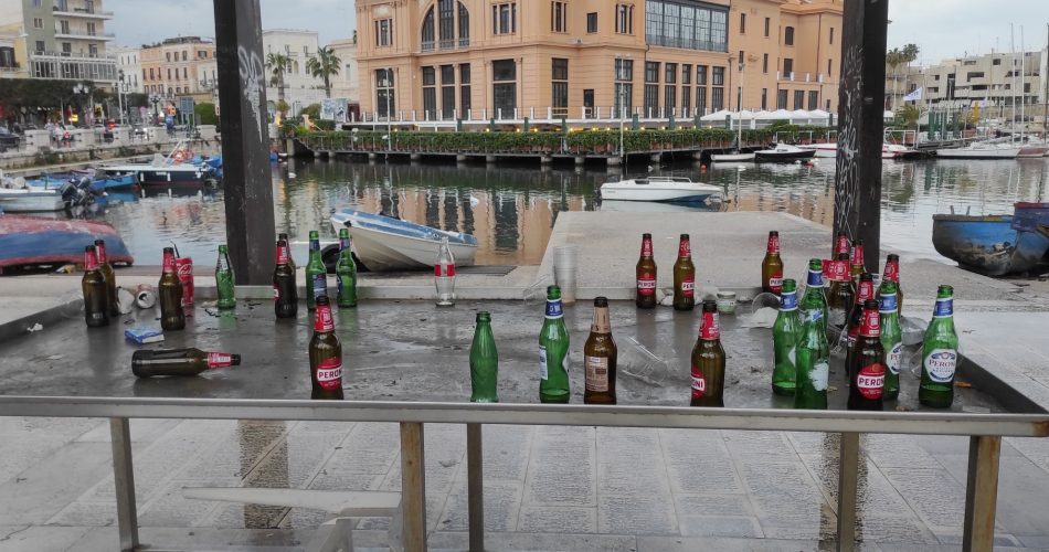 Una distesa di bottiglie di vetro abbandonate sul lungomare, ma non solo, anche rifiuti. È così che si è risvegliata la città dopo la giornata di ieri, 25 aprile, festa della Liberazione, in cui tanti, tra cittadini e turisti, hanno approfittato del tempo libero per passeggiare per le vie del centro e fare i soliti aperitivi con birra e focaccia spostandosi tra lo storico Chiringuito e altre zone del lungomare e della movida, lasciando, un po’ come “Pollicino”, tracce della propria presenza. Le foto sono state pubblicate sul web, a denunciare quanto accaduto un cittadino che riferendosi alla mancanza di civiltà, alle foto ha allegato un solo commento: “Preistorici”.