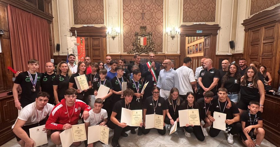 Questa mattina, nella sala consiliare di Palazzo di Città, il sindaco Vito Leccese ha consegnato gli attestati di riconoscimento dell’amministrazione comunale a giovani atleti baresi che si sono distinti per meriti sportivi. Si tratta di 16 tra ragazze e ragazzi che hanno raggiunto ragguardevoli risultati nel corso della stagione appena conclusa. Nell’occasione il sindaco di Bari ha anche consegnato una targa a Saverio Bottalico, barese, che ha arbitrato l’ultima finale della FIFA Beach Soccer World Cup alle Seychelles. Alla cerimonia è intervenuto il consigliere delegato del sindaco alle relazioni con gli enti, associazioni, istituti aventi finalità sportive e ricreative Lorenzo Leonetti.