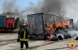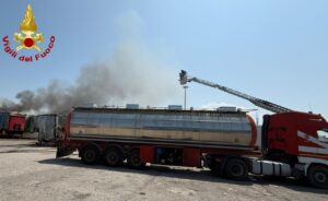 Immediato l’intervento dei Vigili del Fuoco, giunti sul posto con quattro squadre, un’autobotte chilolitrica, un’autoscala e altri mezzi di terra. I soccorritori hanno affrontato il rogo riuscendo a circoscrivere le fiamme e a impedire che l’incendio si estendesse ad altri veicoli. I danni sono stati contenuti e al momento i Vigili del Fuoco stanno completando le operazioni di messa in sicurezza dell’area. Nessuna persona è rimasta ferita.