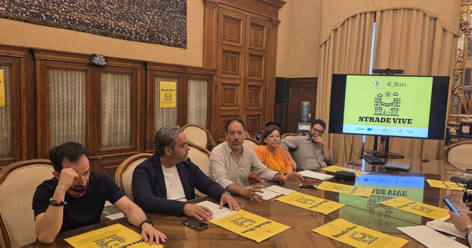È stato presentato questa mattina, nella sala giunta di Palazzo di Città, l’avviso pubblico Strade Vive, la nuova iniziativa del Comune di Bari pensata per sostenere il rilancio dell’economia di prossimità e la valorizzazione condivisa delle aree commerciali urbane.