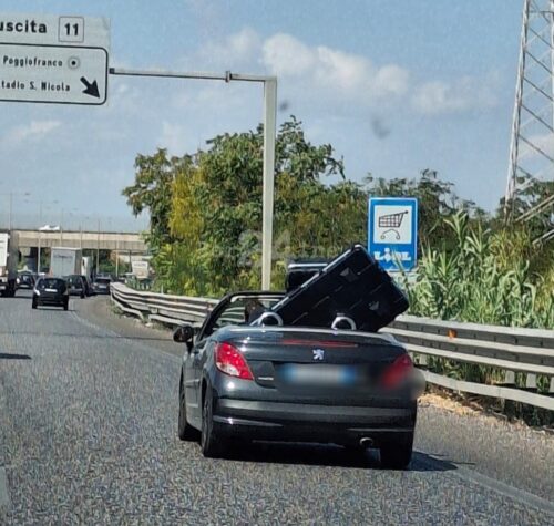 Valigie e contenitori sistemati quasi a coprire la visuale. Ecco come si viaggia sulla tangenziale di Bari, all’altezza di Poggiofranco. La foto di un lettore testimonia lo scarso rispetto delle…