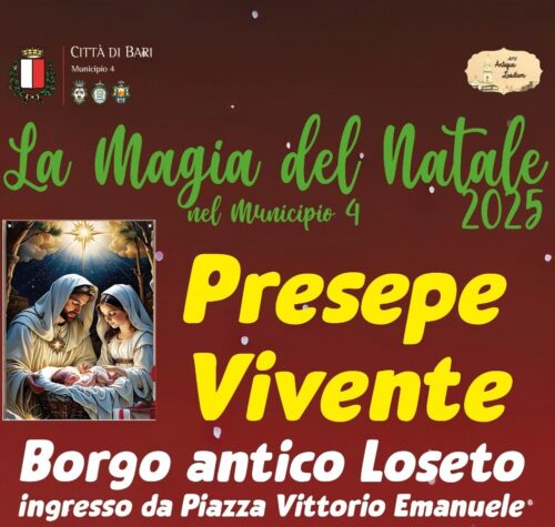Tra le luci e i vicoli del borgo antico di Loseto, il Natale prende forma attraverso la storia e la tradizione. Nei giorni del 27 e 28 dicembre, dalle 18.30…