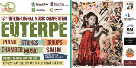 Tutto pronto per il via della 18^ edizione del concorso internazionale di musica Euterpe, organizzato dall’omonima associazione culturale con il sostegno di istituzioni e enti privati in programma a Corato in due distinte sessioni (3-4 maggio e 13-22 maggio): oltre 500 i partecipanti, in arrivo da Puglia, Basilicata, Campania, Calabria, Lazio, Molise e Abruzzo, che […]