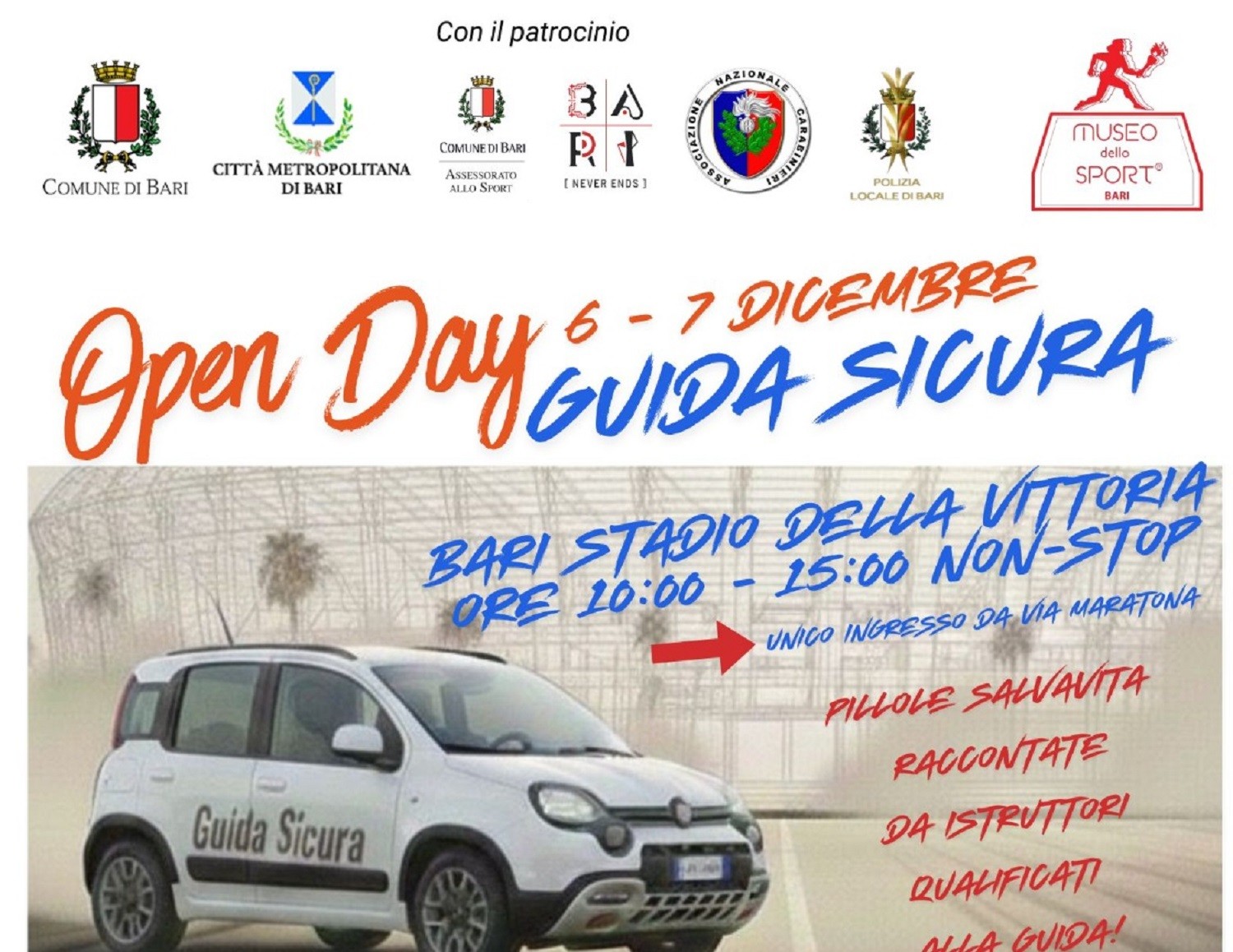 Il Museo dello Sport di Bari organizza la prima edizione dell’Open Day Sicurezza Stradale, un evento pubblico interamente dedicato alla prevenzione degli incidenti, alla guida sicura e alla sensibilizzazione sui comportamenti corretti da tenere in strada. L’iniziativa si svolgerà sabato 6 e domenica 7 dicembre 2025, per l’intera giornata, negli spazi dello Stadio della Vittoria. […]