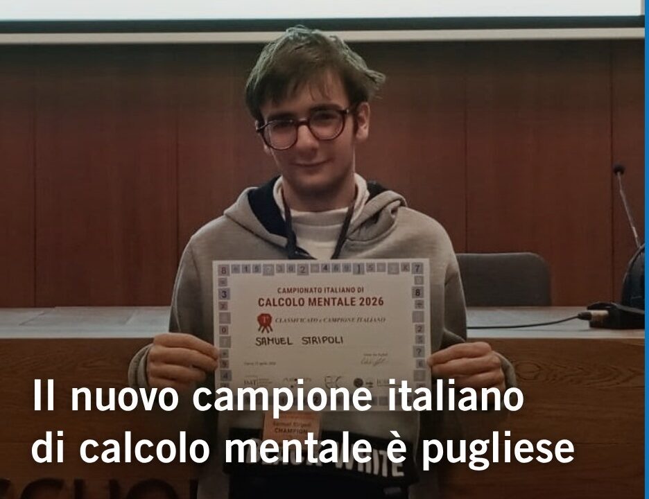 Non servono calcolatrici quando in campo scende Samuel Stripoli. Il giovane studente barese, appena 17enne e orgoglio del Liceo Scientifico “Arcangelo Scacchi”, ha conquistato il titolo di Campione Italiano Assoluto di calcolo mentale durante la competizione nazionale svoltasi a Lucca il 10 e 11 aprile. Samuel non si è limitato a vincere, ha compiuto una […]