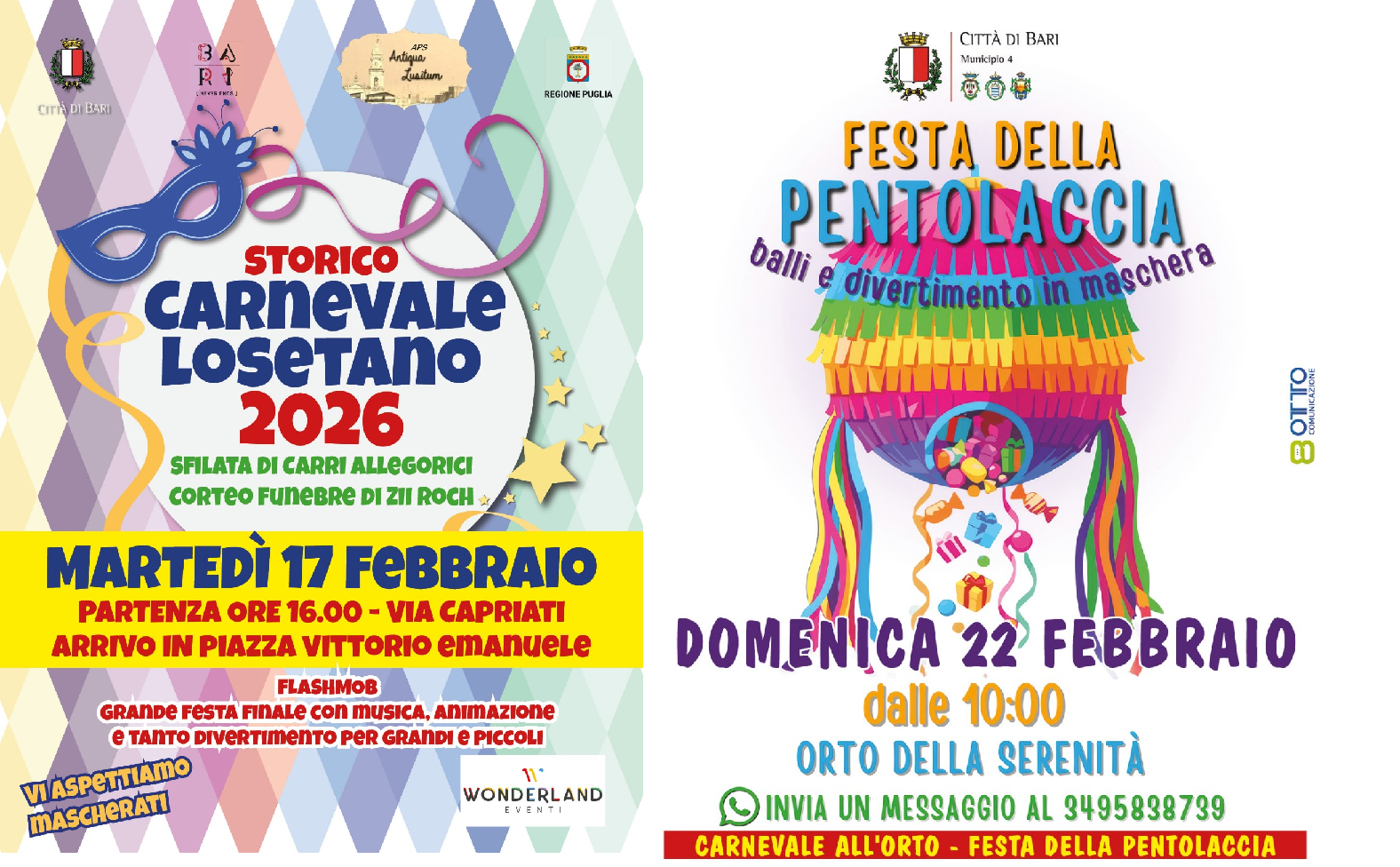 Il Carnevale di Carbonara torna a colorare le strade del Municipio IV con nuovi appuntamenti riprogrammati dopo le date iniziali. Tra sfilate, musica e giochi, le famiglie e i bambini potranno divertirsi immersi nelle tradizioni locali e nelle iniziative dedicate a tutte le età. Domani, martedì 17 febbraio, sarà il turno del Carnevale storico Losetano […]