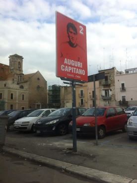 “La aspettiamo in Puglia a Latiano, città di Bartolo Longo”. Recita così l’enorme manifesto sistemato sull’ex mercato del Pesce in piazza del Ferrarese, che invita Papa Francesco in Puglia. Bartolo Longo è stato fondatore e benefattore del Santuario della Beata Vergine del Rosario di Pompei. Fu beatificato da Papa Giovanni Paolo II il 26 ottobre 1980.