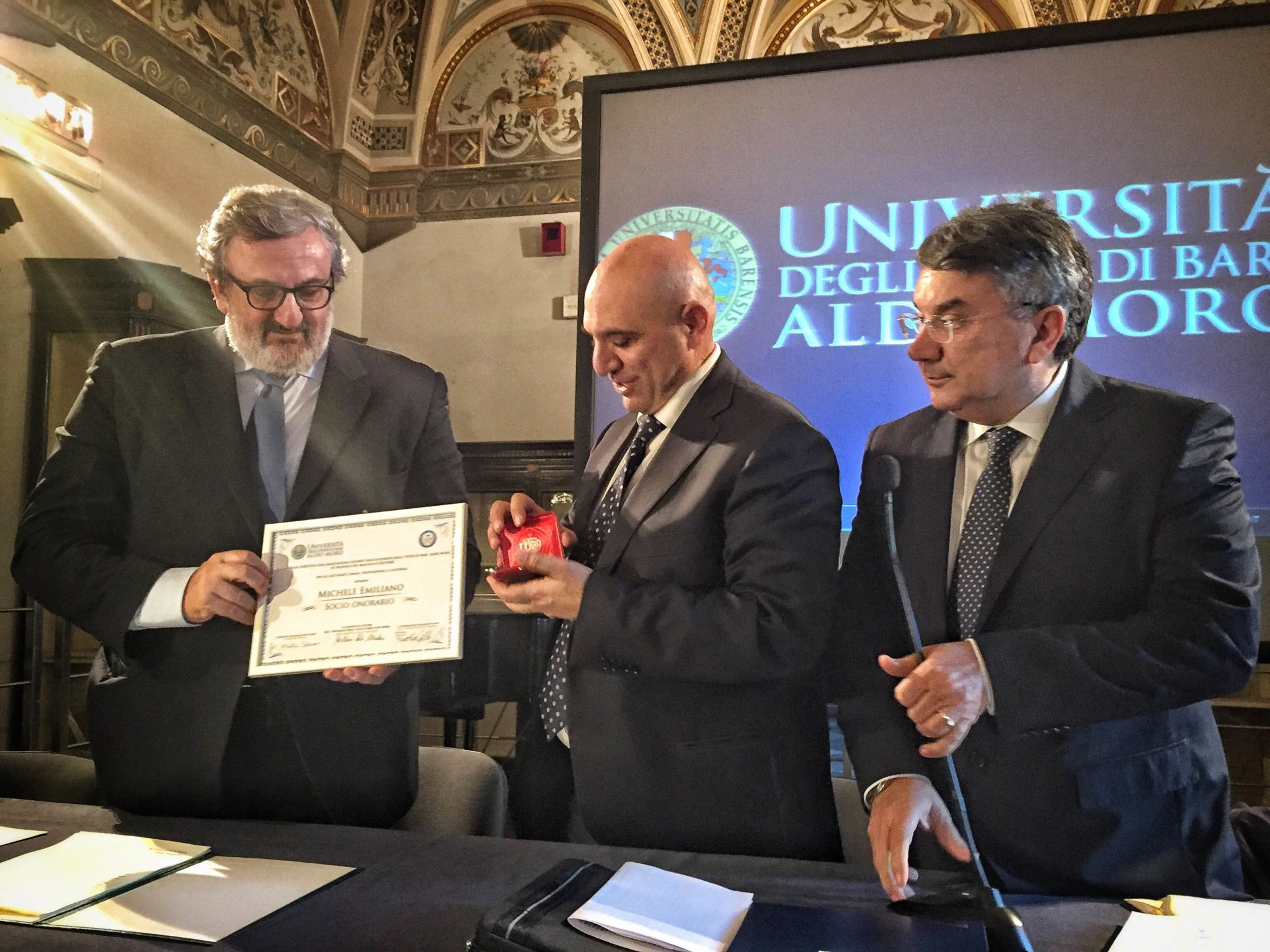 Il presidente della Regione Puglia Michele Emiliano ha ricevuto il sigillo d’oro dal rettore dell’università di Bari “Aldo Moro”, Antonio Uricchio. Si tratta di un prestigioso riconoscimento che viene attribuito a ex studenti che nel corso della loro successiva vita lavorativa, si sono particolarmente distinti nel proprio ambito professionale. “E’ nell’università della mia città, nel […]