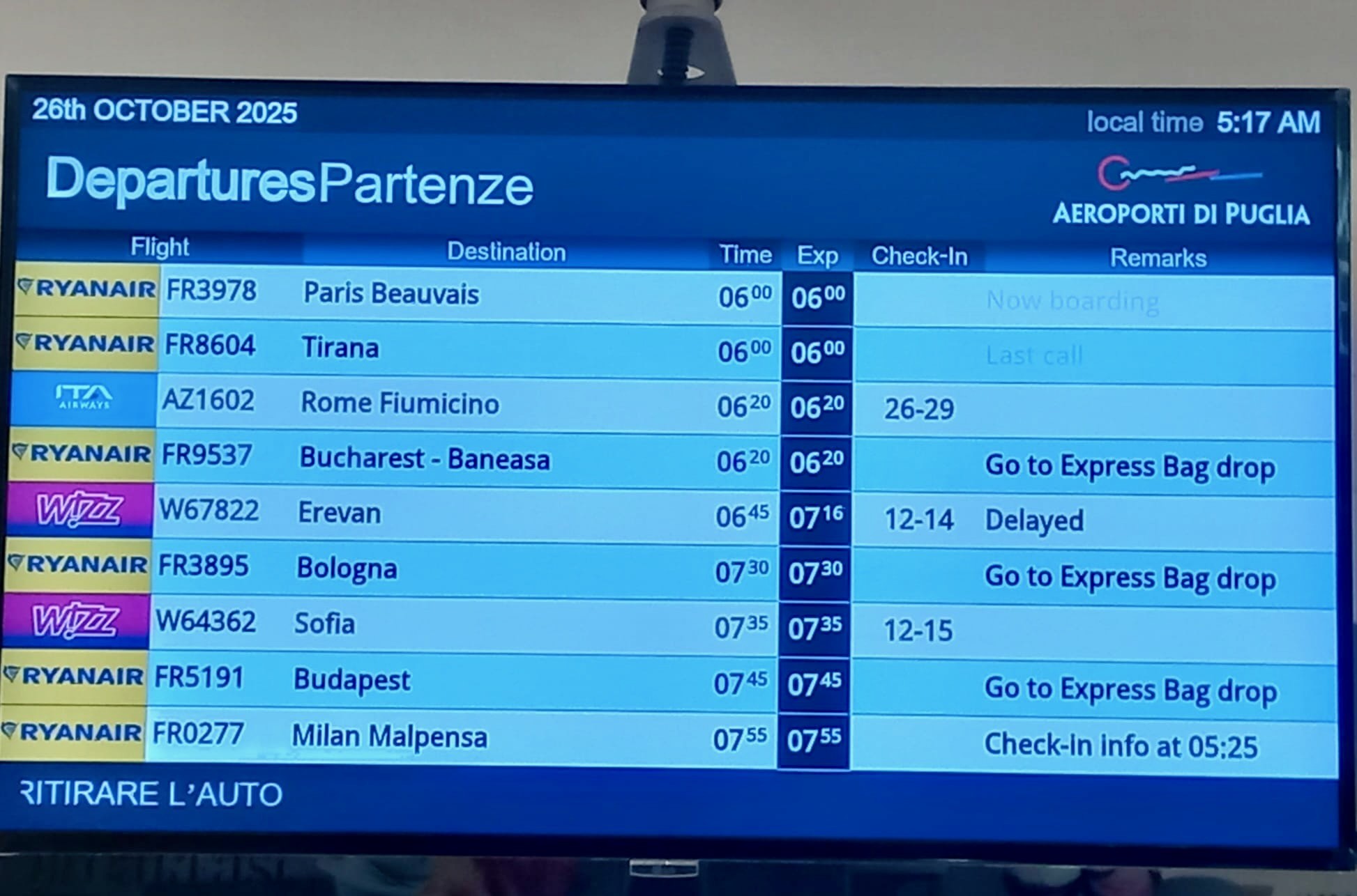 Alle ore 6,30 dopo l’arrivo del primo volo proveniente da Yerevan è stato effettuato oggi all’Aeroporto “Karol Wojtyła” di Bari il nuovo volo diretto Bari–Jerevan, che rafforza i legami storici, culturali ed economici tra Puglia e Armenia. Il Console Onorario della Repubblica d’Armenia in Bari, Dario Rupen Timurian, molto emozionato dopo il taglio del nastro […]