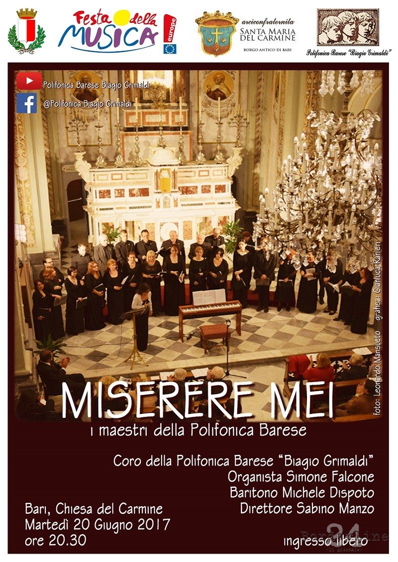 Martedì 20 giugno sarà inaugurata la stagione estiva dell’Associazione Polifonica barese “Biagio Grimaldi” con un nuovo appuntamento, realizzato in collaborazione con l’Arciconfraternita Santa Maria del Carmine e in occasione della Festa della Musica. Tema cardine della serata, che si svolgerà nella Chiesa del Carmine di Bari, sarà la musica sacra di cui l’Associazione Polifonica Barese […]