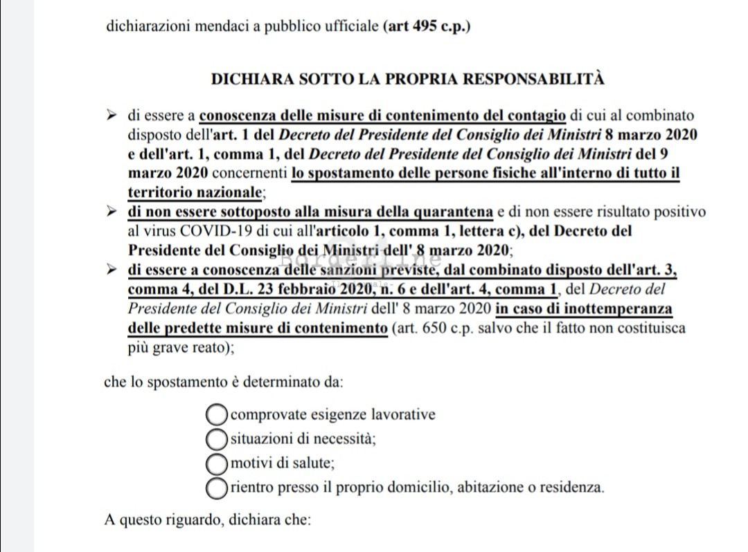 È online il nuovo modello di autodichiarazioni in caso di spostamenti , che contiene una nuova voce con la quale l’interessato deve autodichiarare di non trovarsi nelle condizioni previste dall’art. 1, comma 1, lett. c) del D.P.C.M. 8 marzo 2020 che reca un divieto assoluto di mobilità dalla propria abitazione o dimora per i soggetti […]