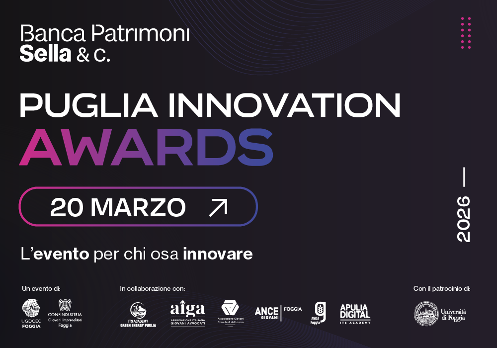 Si terrà venerdì 20 marzo a Foggia la prima edizione dei Puglia Innovation Awards, l’evento dedicato a imprese, startup e innovazione tecnologica, in programma dalle 8.30 alle 18.00 presso il Dipartimento di Giurisprudenza dell’Università degli Studi di Foggia. L’iniziativa, promossa da UGDCEC Foggia e Confindustria Giovani Imprenditori Foggia, in collaborazione con numerosi partner istituzionali e […]