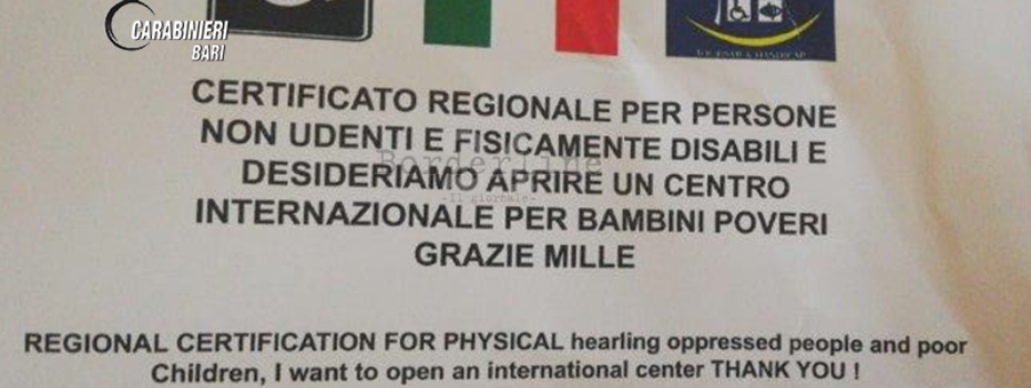 Due ragazze di nazionalità rumena, sono state denunciate nella serata di sabato dai Carabinieri di Giovinazzo. in piena movida giovinazzese, lungo l’affollato lungomare ed in pieno centro storico, le due hanno truffato tante persone che, innocentemente, hanno creduto alle due finte sordo-mute. Le due giovani, infatti, hanno avvicinato diversi passanti, fingendo di essere sordo-mute, hanno […]