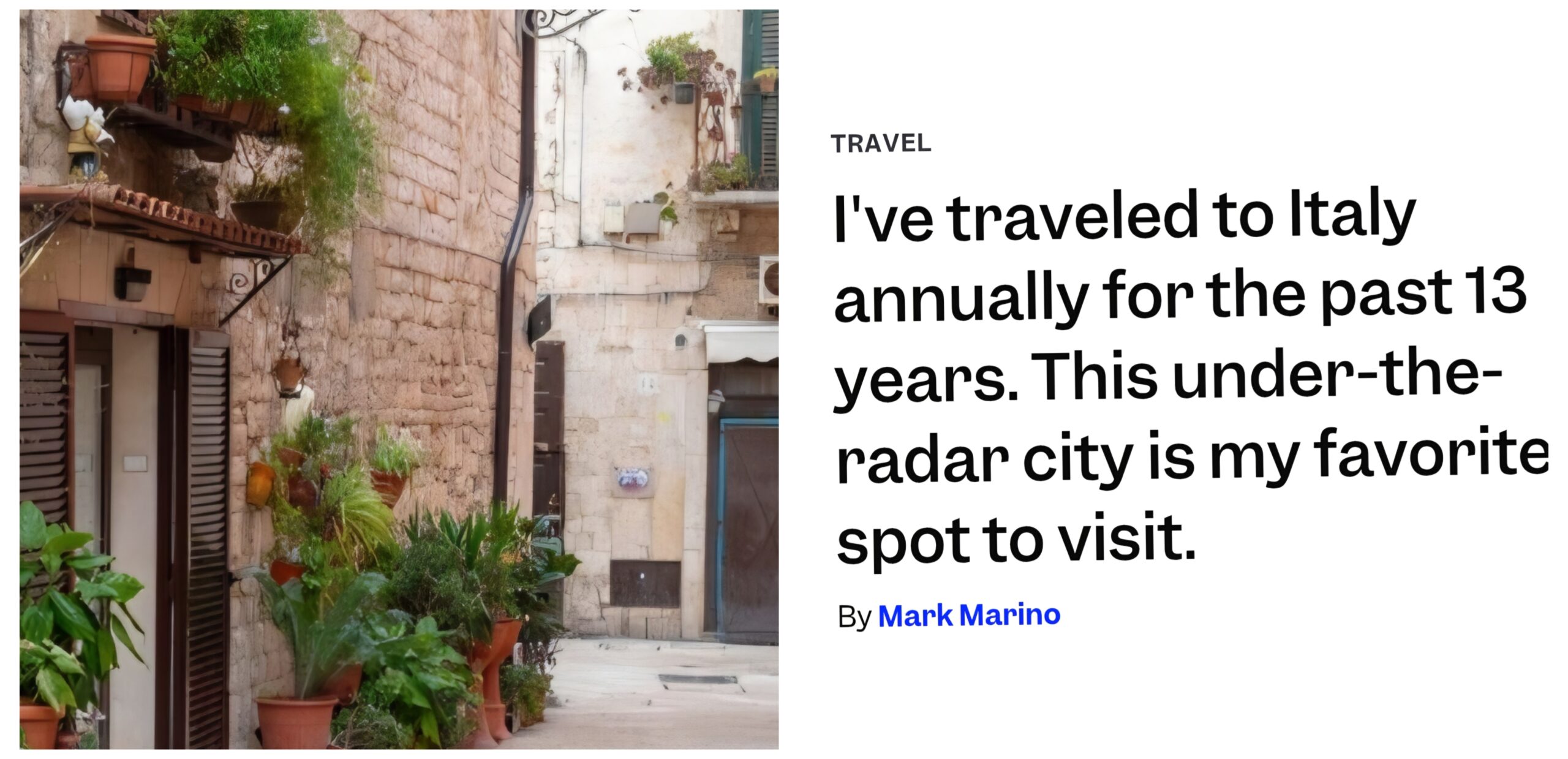 “Roma, Firenze, Venezia? Splendide, certo. Ma il vero ‘posto del cuore’ in Italia è Bari”. A scriverlo non è un barese di parte, ma il giornalista Mark Marino in un lungo e appassionato articolo pubblicato su Business Insider, una delle testate americane economiche e di lifestyle più influenti al mondo. “Dopo oltre vent’anni di viaggi […]