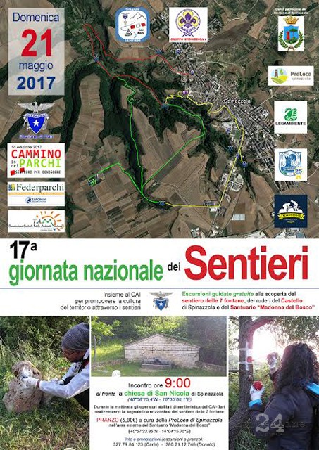In occasione della 17^ Giornata Nazionale dei Sentieri, domenica 21 maggio 2017, il CAI Bari aderisce all’appuntamento annuale del Club Alpino Italiano e di FederParchi “In cammino nei Parchi”,inaugurando insieme ad escursionisti e appassionati che vorranno accompagnarli, il nuovo sentiero “le 7 Fontane” di Spinazzola. In cammino nei Parchi è l’iniziativa di sensibilizzazione creata 5 […]