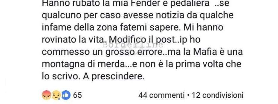 Chitarra elettrica e pedaliera. Ennesimo furto di strumenti musicali in città, questa volta in via Re David al quartiere San Pasquale. La scorsa notte l’automobile di un chitarrista barese è stata forzata da ignoti, dall’abitacolo è stata rubata una preziosa chitarra Fender, modello Stratocaster86 (in uso da 20 anni), e la pedaliera multieffetto. “Siamo a […]