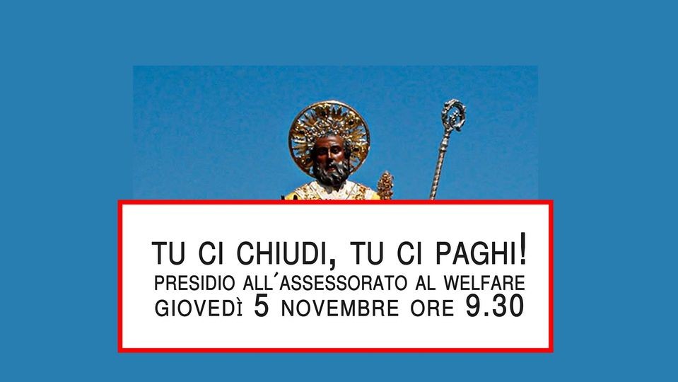 Anche Bari, sulla scia di molte altre città italiane, si unisce al monito “Tu ci chiudi, tu ci paghi”. E’ questo infatti il titolo del presidio che si terrà giovedì 5 novembre, sotto l’assessorato al Welfare, in piazza Chiurlia. Il presidio organizzato dalla Camera del lavoro Auto organizzata COBAS Bari, in collaborazione con gli attivisti […]