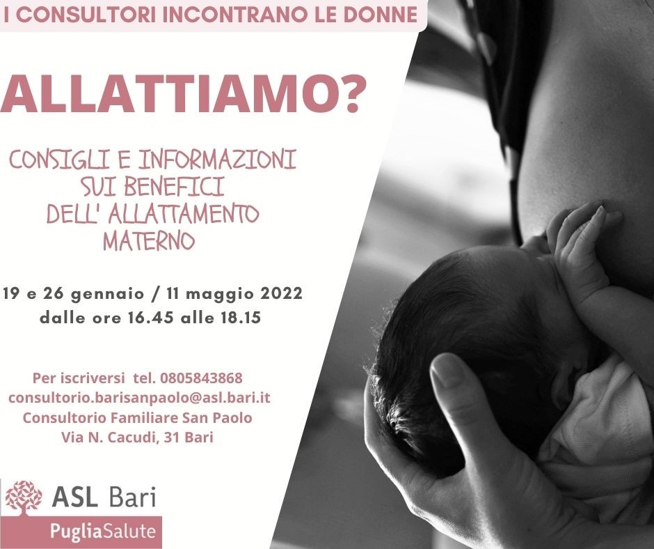 I consultori della ASL incontrano le donne. Da gennaio fino a giugno il Distretto Socio Sanitario di Bari ha organizzato una serie di giornate dedicate a incontri informativi, di prevenzione e conoscenza su tematiche di salute che coinvolgono direttamente il mondo femminile: dalla contraccezione, alla gravidanza, dalla salute materna dopo il parto all’allattamento. L’obiettivo delle […]