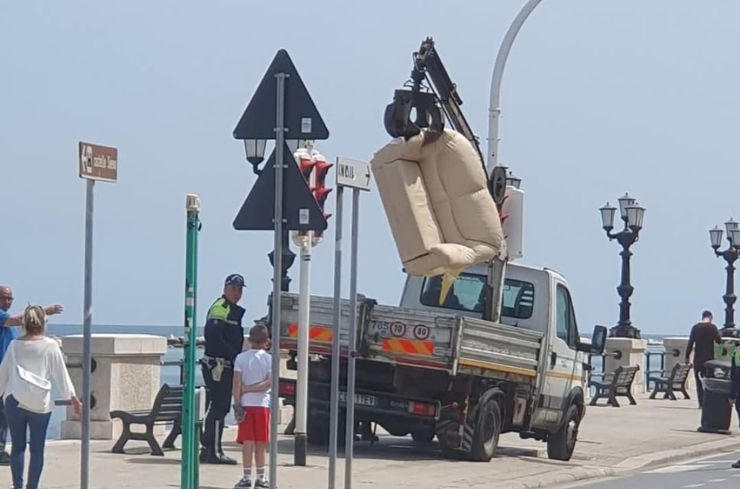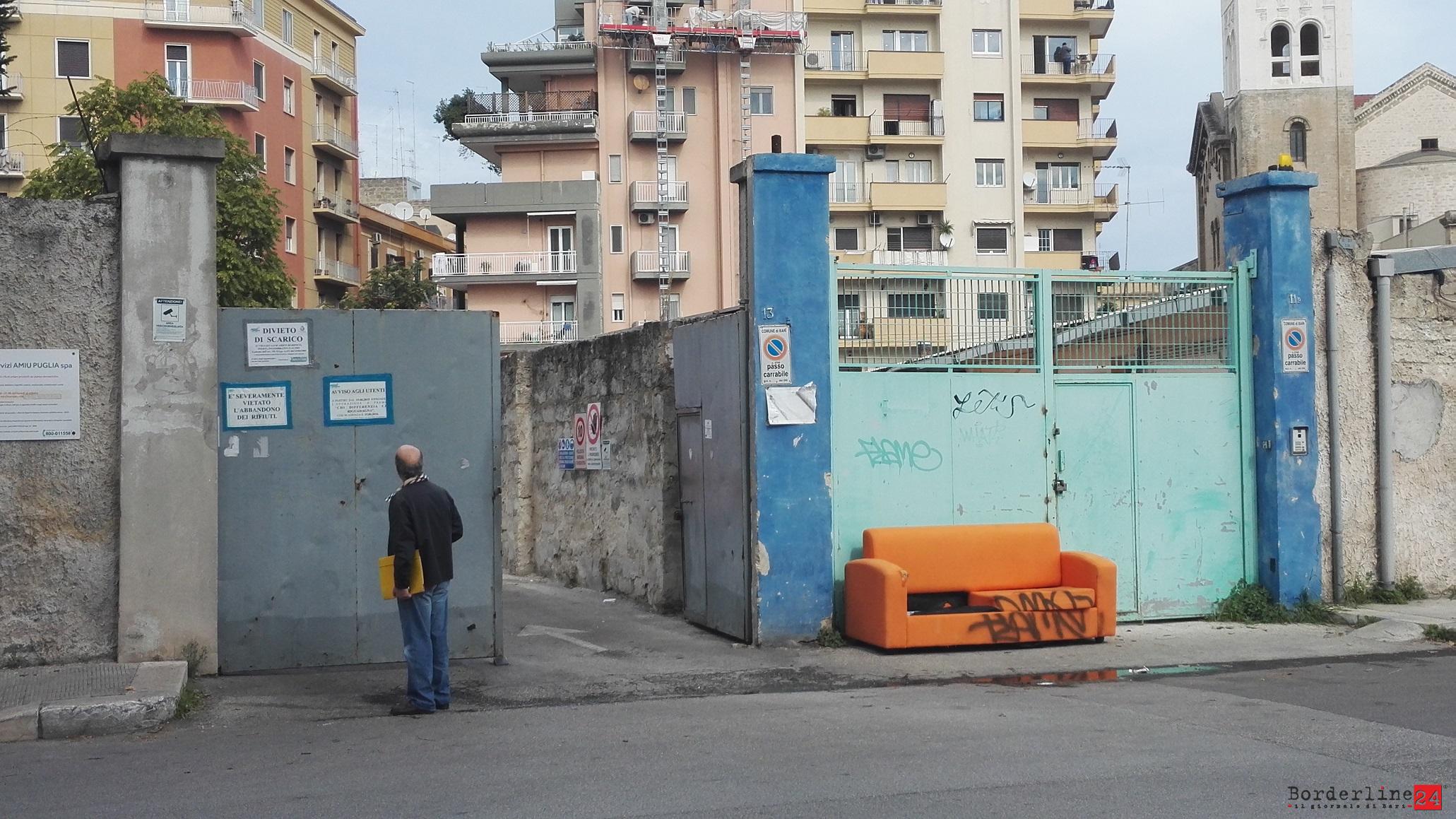 A vederla così sembrerebbe quasi una provocazione, invece più probabilmente è solo l’ennesimo atto di inciviltà a Bari. Siamo in via Oberdan, proprio davanti al centro di conferimento e raccolta dell’Amiu, dove capeggia il cartello “divieto di scarico”. A pochi passi qualcuno ha comunque abbandonato un divano, magari nella speranza che qualche operatore ecologico di buon cuore lo porti all’interno […]