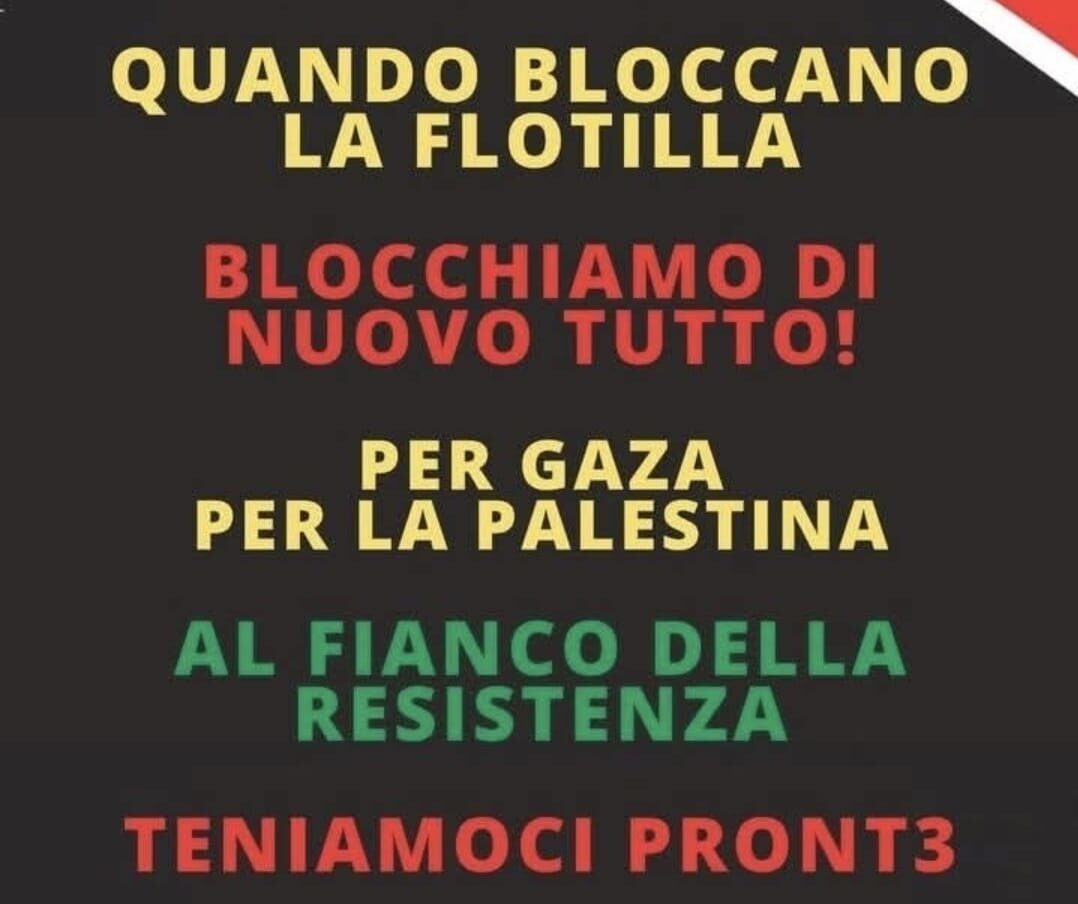 La Flotilla si sta avvicinando al blocco illegale di Israele. Potrebbe accadere questa notte o al massimo domani. “Quando bloccano la Flottila, blocchiamo tutti”, scrive quindi il movimento Assemblea Bari per Palestina. La Marina israeliana si sta preparando per prendere il controllo in alto mare delle oltre 50 imbarcazioni della Flotilla che sono entrate nel […]