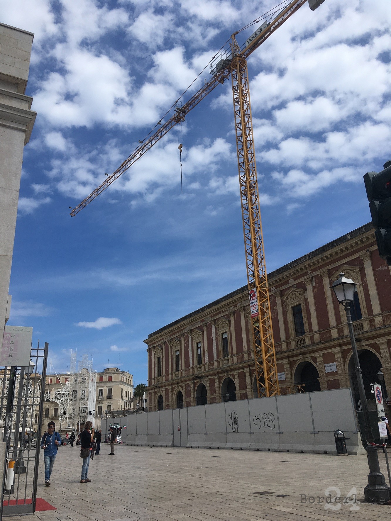 Da un giorno all’altro, una gru alta 80 metri è stata montata in piazza del Ferrarese. L’imponente macchinario, di colore giallo, posizionato all’interno del cantiere dell’ex mercato del Pesce, ha un forte impatto rispetto alle pareti bianche di Bari Vecchia. E smorza in parte l’impatto visivo offerto dalle luminarie installate a pochi metri di distanza […]
