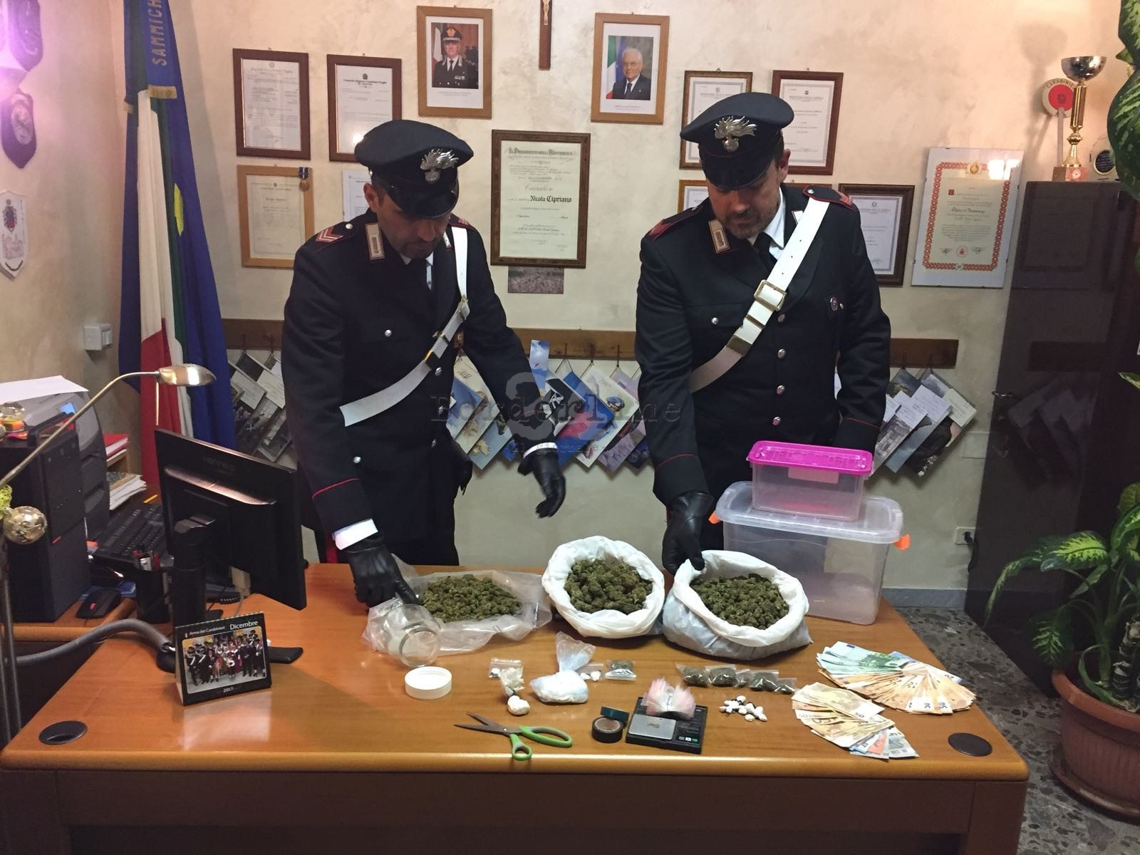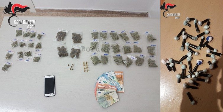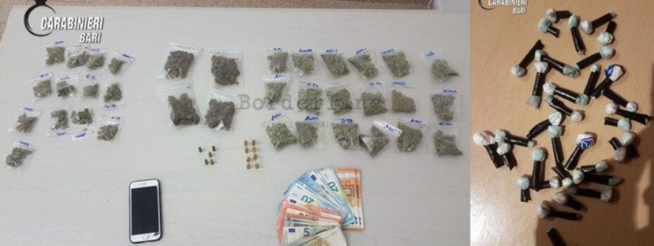 Brillante operazione dei carabinieri della stazione di Sammichele di Bari, che ieri pomeriggio hanno recuperato e sequestrato quasi un chilogrammo di marijuana, numerosi dosi di cocaina, 3.400 euro in banconote di piccolo taglio e materiale per il taglio e confezionamento dello stupefacente. Considerati gli ingenti quantitativi di stupefacenti e la somma di denaro, è probabile […]