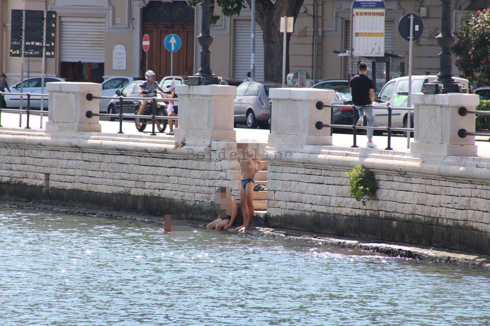 Tre ragazzi questa mattina hanno pensato bene di gettarsi in acqua all’altezza del molo di San Nicola, lì dove l’acqua è più sporca tra alghe e rifiuti di vario genere. Nessun controllo, nessuno era presente per fermarli: si sono tranquillamente gettati in mare per una “rinfrescata” in piena mattinata.