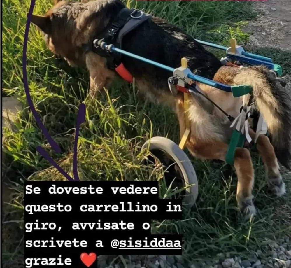“Questo carrellino è stato rubato in via Brennero a Bari, è fondamentale per Mork, pastore tedesco disabile di una mia amica.Se lo avvistate contattatemi Messanger Macy Adaver”. L’appello corre sui social per ritrovare il carrellino di un pastore tedesco, senza il quale il cane non può camminare.