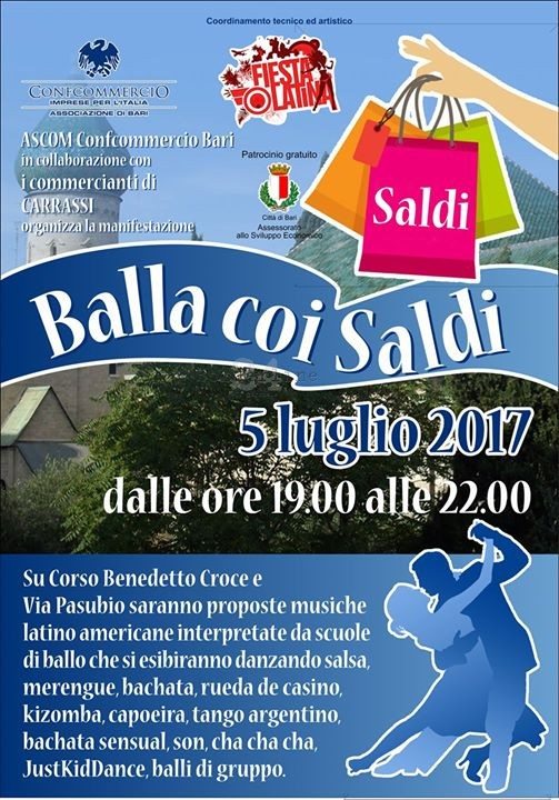 Si terrà domani la manifestazione promossa dai commercianti “Balla con i saldi”. L’evento si svolgerà su corso Benedetto Croce (nel tratto compreso tra via Bottalico e viale Papa Giovanni XXIII) e su via Pasubio (nel tratto compreso tra via Buccari e Corso Benedetto Croce) dalle 19 alle 22 e consisterà nella esibizione di scuole di […]