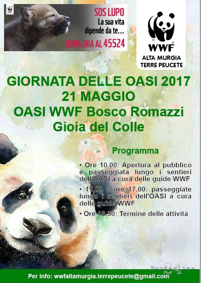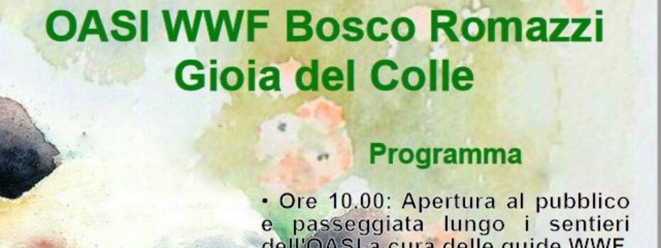 Il 21 maggio il WWF apre gratuitamente al pubblico le sue Oasi, mostrando concretamente che difendere la natura del nostro paese è possibile e rappresenta una ricchezza che appartiene a tutti gli italiani in termini di qualità della vita, benessere, salute. Anche l’OASI WWF di Bosco Romanazzi a Gioia del Colle sarà aperta ai visitatori. L’appuntamento è per domenica 21 maggio, a […]