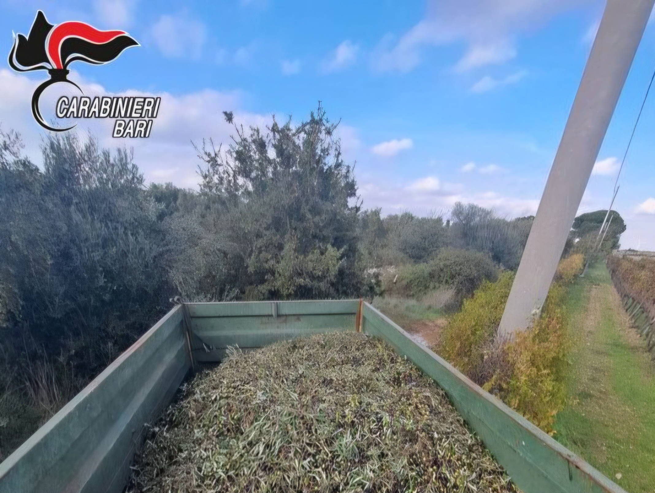 Avevano sottratto circa 53 quintali di olive, per un valore stimato di 6mila euro. Due uomini di 49 e 54 anni sono stati denunciati dai carabinieri di Modugno con l’accusa di furto aggravato. L’intero carico è stato recuperato e restituito al legittimo proprietario, che aveva nel frattempo sporto denuncia.