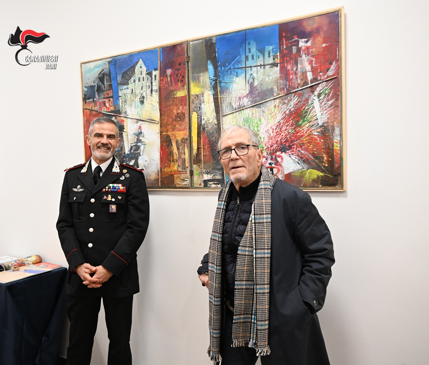 Oggi, presso il Comando Provinciale Carabinieri di Bari, ha avuto luogo la cerimonia per la consegna del “Nuovo Libro di San Nicola”, opera pittorica che l’artista Michele Roccotelli ha voluto donare all’ Arma dei carabinieri. L’artista è stato ricevuto, insieme ai suoi familiari, dal Comandante Provinciale – Generale di Brigata Gianluca Trombetti, che ha voluto […]