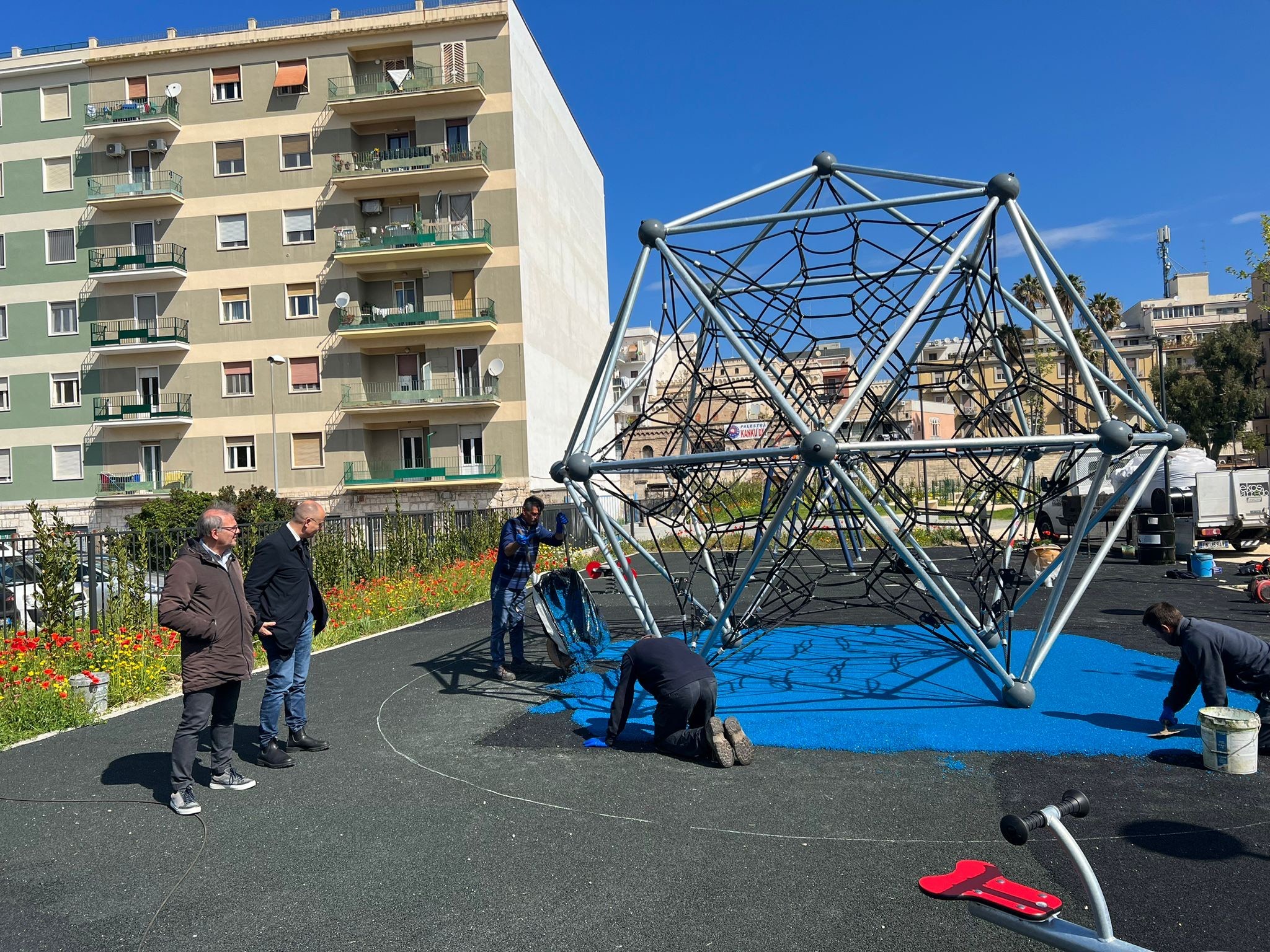 I lavori di riqualificazione del giardino Annoscia, in via Suglia, sono ripresi. Dopo una pausa, più lunga del previsto, necessaria per ottenere alcune autorizzazioni burocratiche relative alle strutture sportive e ad interventi che necessitano della bella stagione per essere realizzati, come la resinatura dei viali e la posa in opera della base del campo da […]