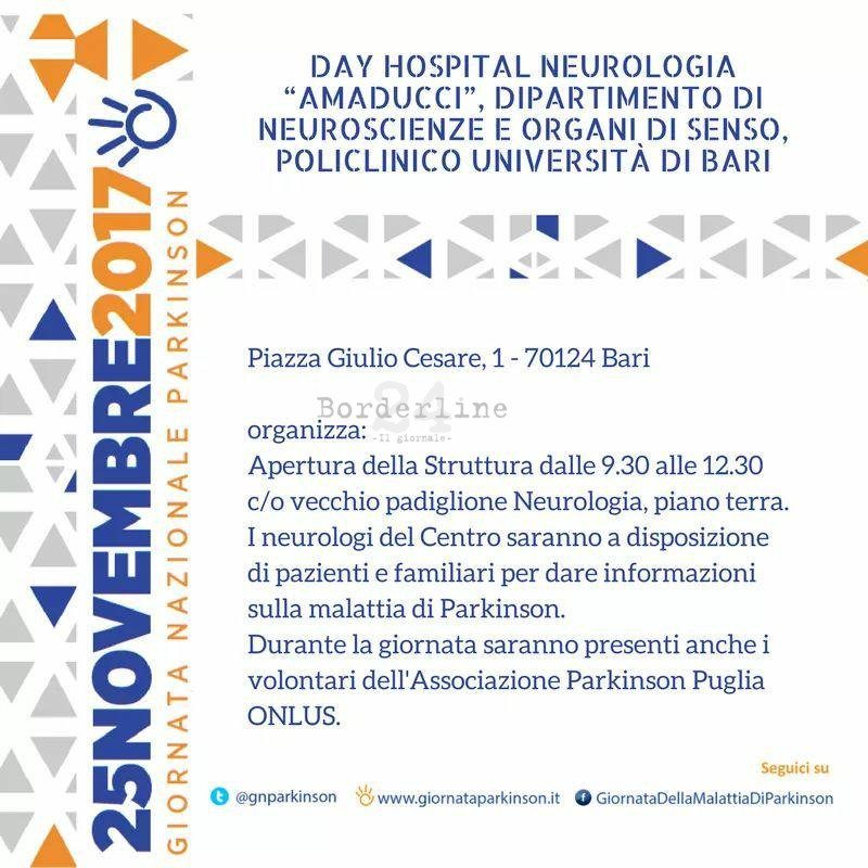 In occasione della Giornata nazionale del Parkinson il 25 novembre, i neurologi e i volontari Parkinson Puglia risponderanno alle domande e offriranno informazioni sulla malattia e sull’Associazione a pazienti, parenti e caregivers presso gli ospedali di Bari, Andria e Acquaviva delle Fonti. Nel dettaglio: ANDRIA – UO Neurologia Ospedale Bonomo ore 9.00 -13.00 BARI – DAY Hospital “Amaducci“ – Dipartimento di […]