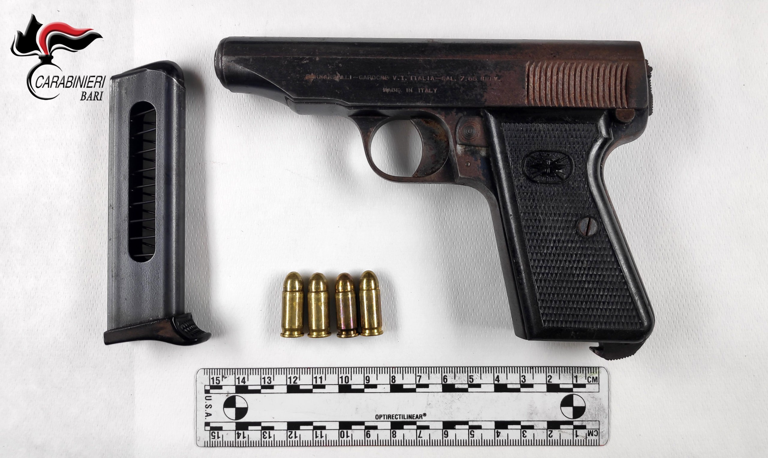 Un 64enne di Manduria (Taranto), evaso dagli arresti domiciliari, è stato trovato per strada dalla polizia con una pistola semiautomatica munita di caricatore, 5 cartucce e colpo in canna, altri due caricatori per la stessa arma con 7 colpi ciascuno, un taglierino e oltre 6mila euro in contanti. L’uomo è stato arrestato per i reati […]