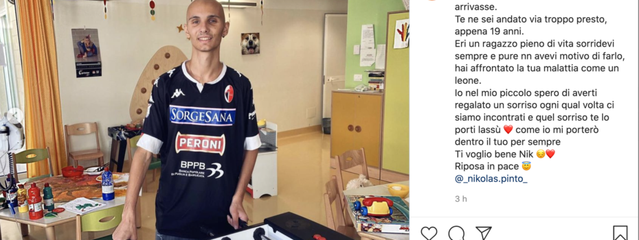Appassionato di calcio, tifoso dei colori della propria città e amico di alcuni dei protagonisti della Ssc Bari. Nikolas Pinto è stato sconfitto da un tumore a soli 19 anni, dopo aver lottato duramente contro la malattia. Per questo alcuni giocatori biancorossi, tra cui il bomber Simone Simeri, e il presidente Luigi De Laurentiis lo […]