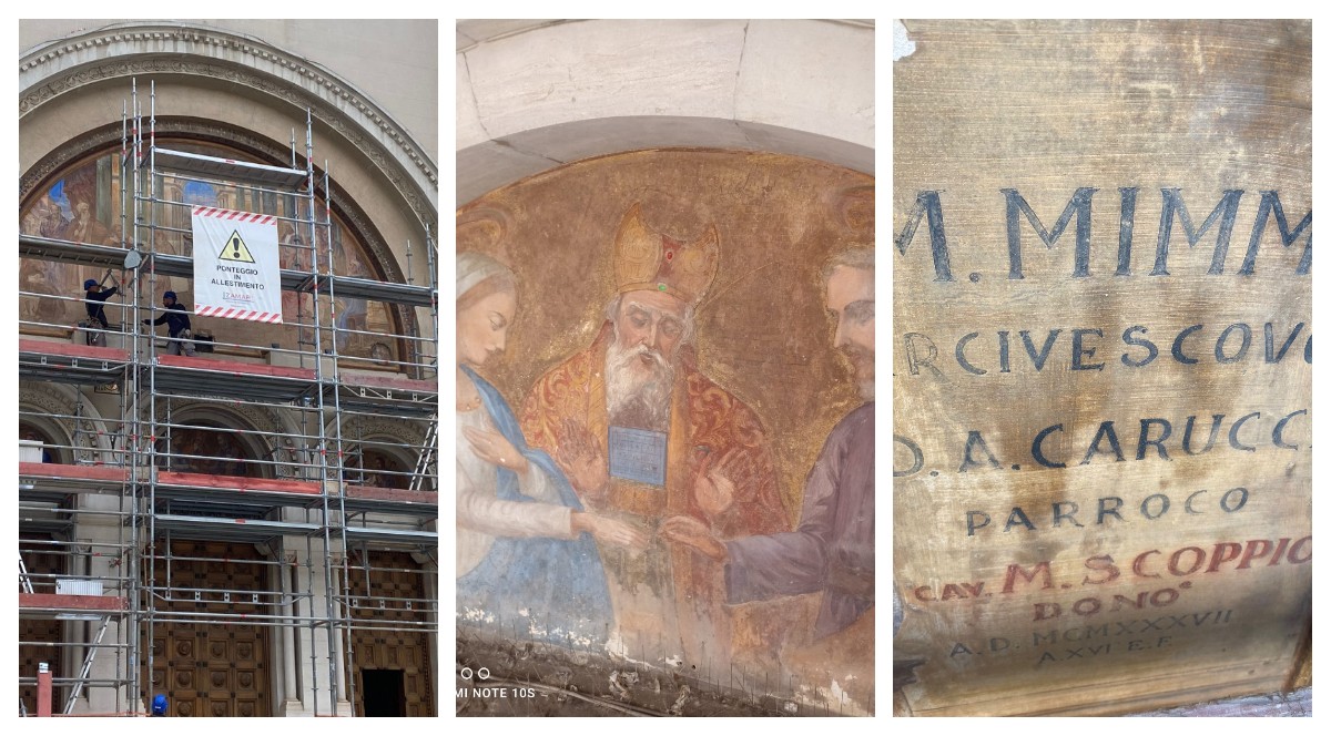 È in corso il restauro dei dipinti murali situati sul prospetto anteriore della facciata di San Giuseppe. Il ponteggio è stato allestito e sono stati effettuati dei campionamenti per le indagini diagnostiche sulle tecniche impiegate. A spiegare i lavori in corso il direttore tecnico di cantiere Annamaria Riefolo. “Abbiamo trovato – spiega – la firma […]