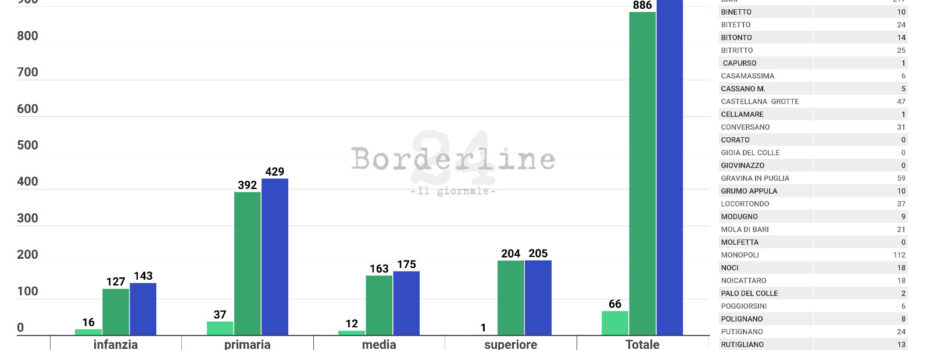 Resta invariata la circolazione del virus in ambito scolastico: sono infatti 857 i casi registrati nella settimana 14-20 febbraio, sostanzialmente in linea con le 887 positività tracciate nei sette giorni precedenti. Degli 857 casi attuali, si legge in una nota dell’Asl di Bari, 807 riguardano alunni e 50 operatori scolastici. Nel dettaglio del report scuole, […]