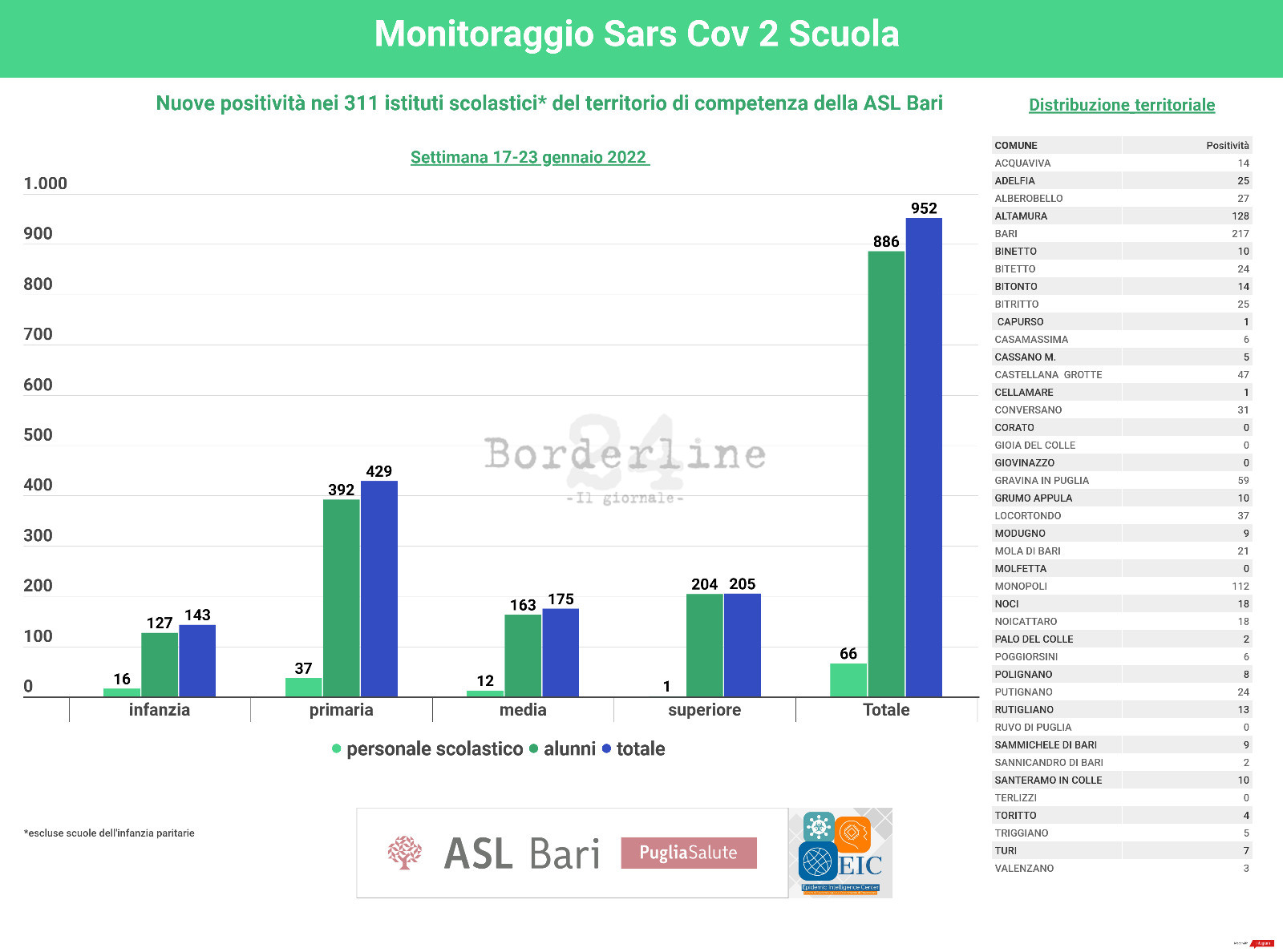 Continua a crescere il numero di casi positivi riscontrati dalla Asl in ambito scolastico. In appena sette giorni rispetto all’ultimo monitoraggio, dall’attività di sorveglianza sanitaria dell’Epidemic intelligence center sono emerse 952 nuove positività, 185 in più rispetto alle 767 della settimana scorsa. “Il lavoro di tracciamento nelle scuole avviene in tempi brevi – spiega Federica […]