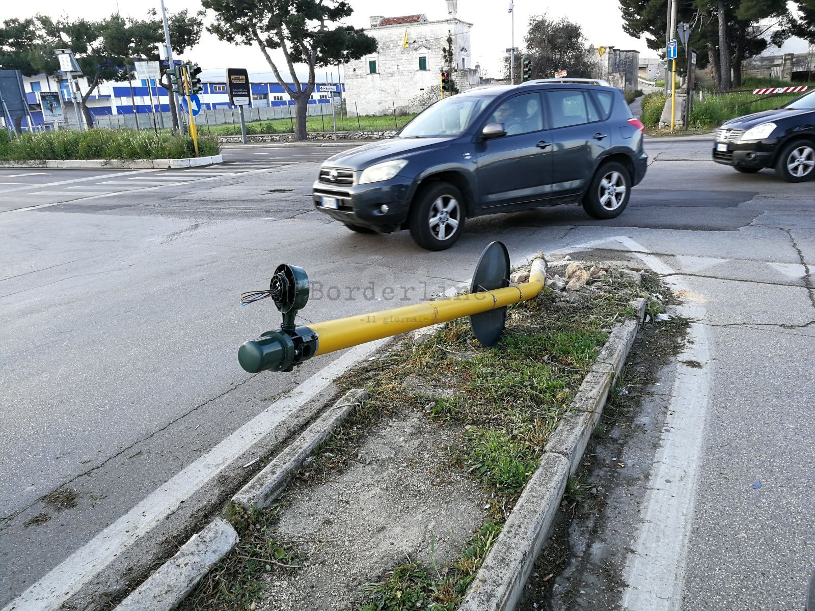 Travolto il semaforo che da San Girolamo permette di svoltare su via Napoli, all’incrocio con la tangenziale. Qualcuno nella notte lo ha buttato giù con il proprio mezzo mandando in tilt l’intera svolta. Dato che il semaforo regola appunto la svolta a sinistra e questa mattina non sono mancati disagi.