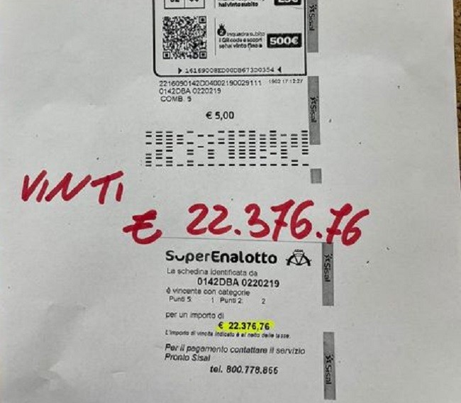 La dea della fortuna bacia Barletta. Ieri sono stati vinti infatti 480.505,82 euro con una schedina del SuperEnalotto. Non è dato sapere chi sia il vincitore o la vincitrice che ha centrato il “5+1”. Ma secondo quanto riportato da Agipronews (sito che monitora tutte le vincite in Italia), la schedina è stata giocata nella Tabaccheria […]