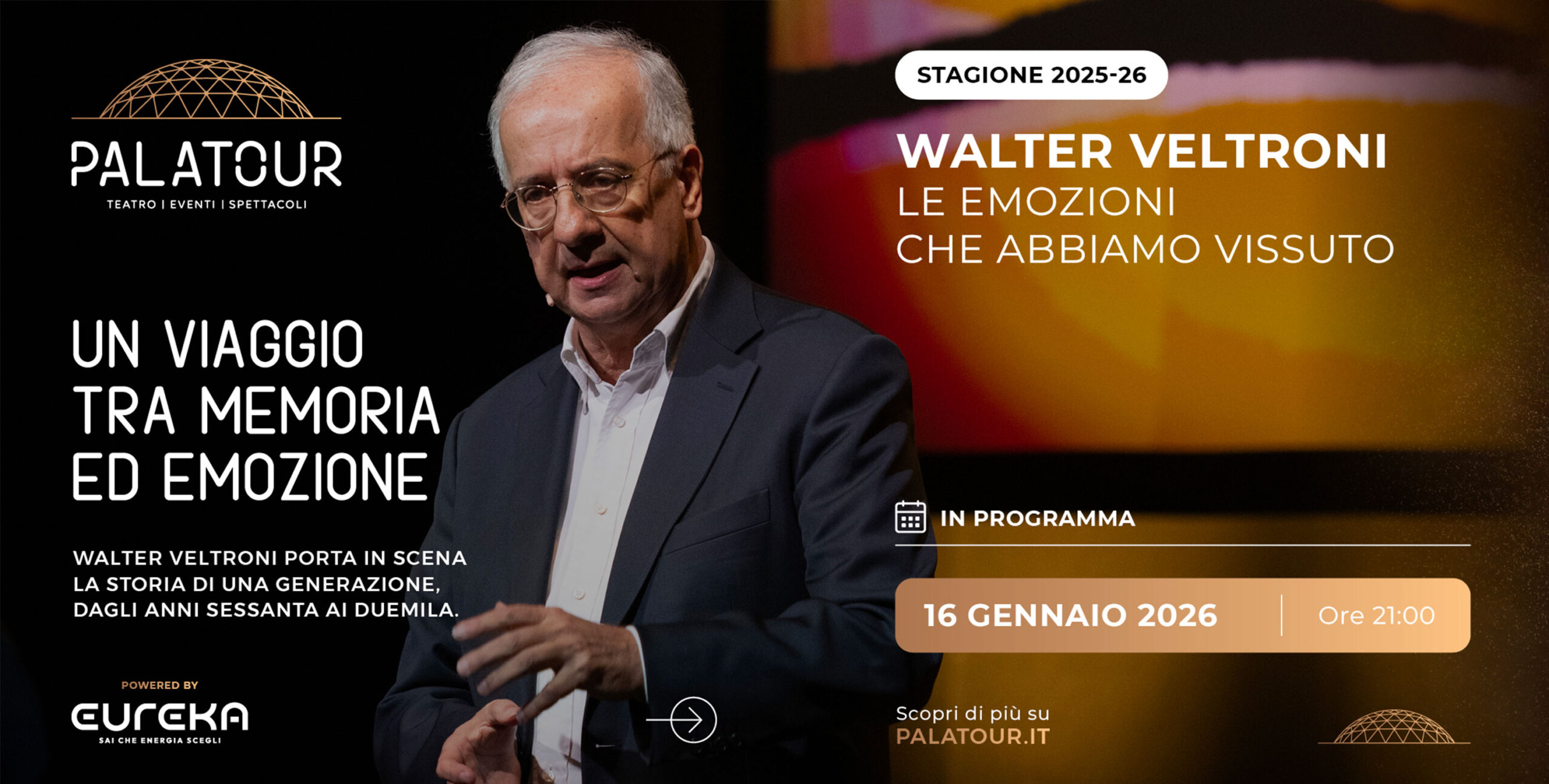 Venerdì 16 gennaio il Palatour di Bitritto si trasformerà in un ponte tra passato e presente, ospitando uno spettacolo che vuole parlare al cuore del pubblico prima ancora che alla mente. Sul palco salirà Walter Veltroni, protagonista assoluto di “Le emozioni che abbiamo vissuto”, accompagnato dal giovane pianista torinese Gabriele Rossi, per un racconto che […]