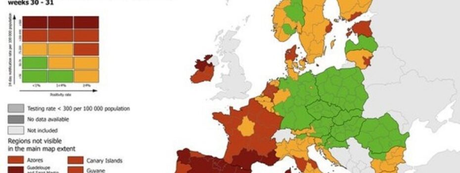 Salgono a 5 le regioni italiane dichiarate rosse dal Centro europeo per la prevenzione e il controllo delle malattie. A Sicilia, Sardegna, Toscana e Marche, si è aggiunta infatti anche la Calabria. Tutto il resto d’Italia è invece in giallo, ad eccezione del Molise e della Provincia autonoma di Bolzano, in verde. Nel resto d’Europa […]